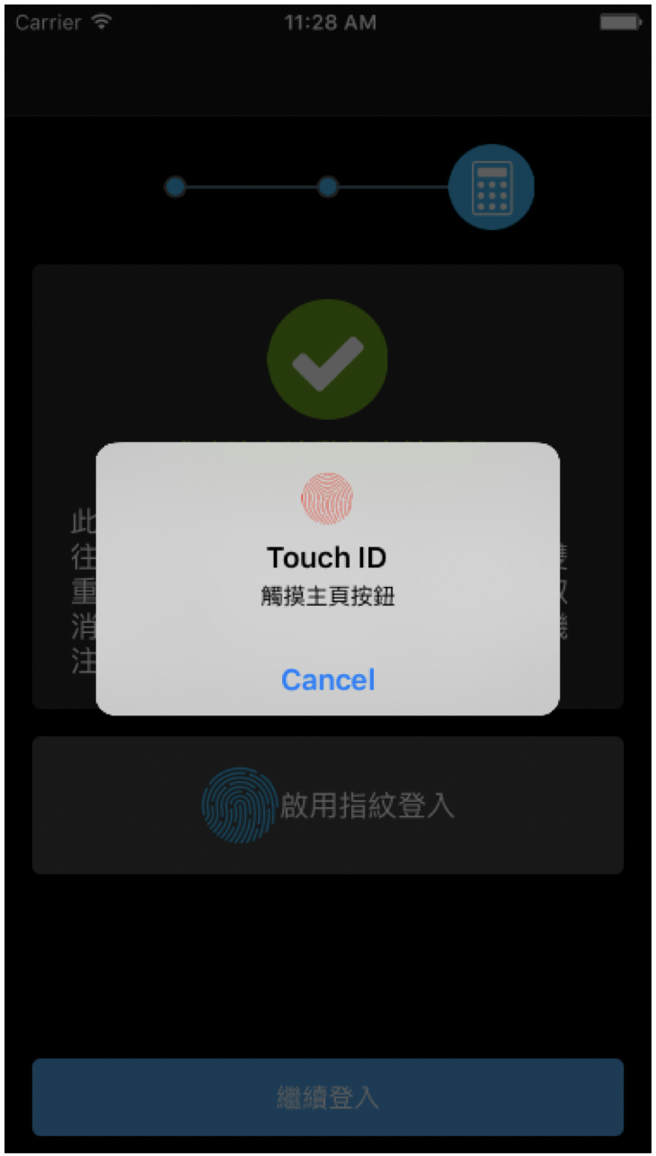 步骤9. 将指纹放在主页按钮来正式启动指纹登入