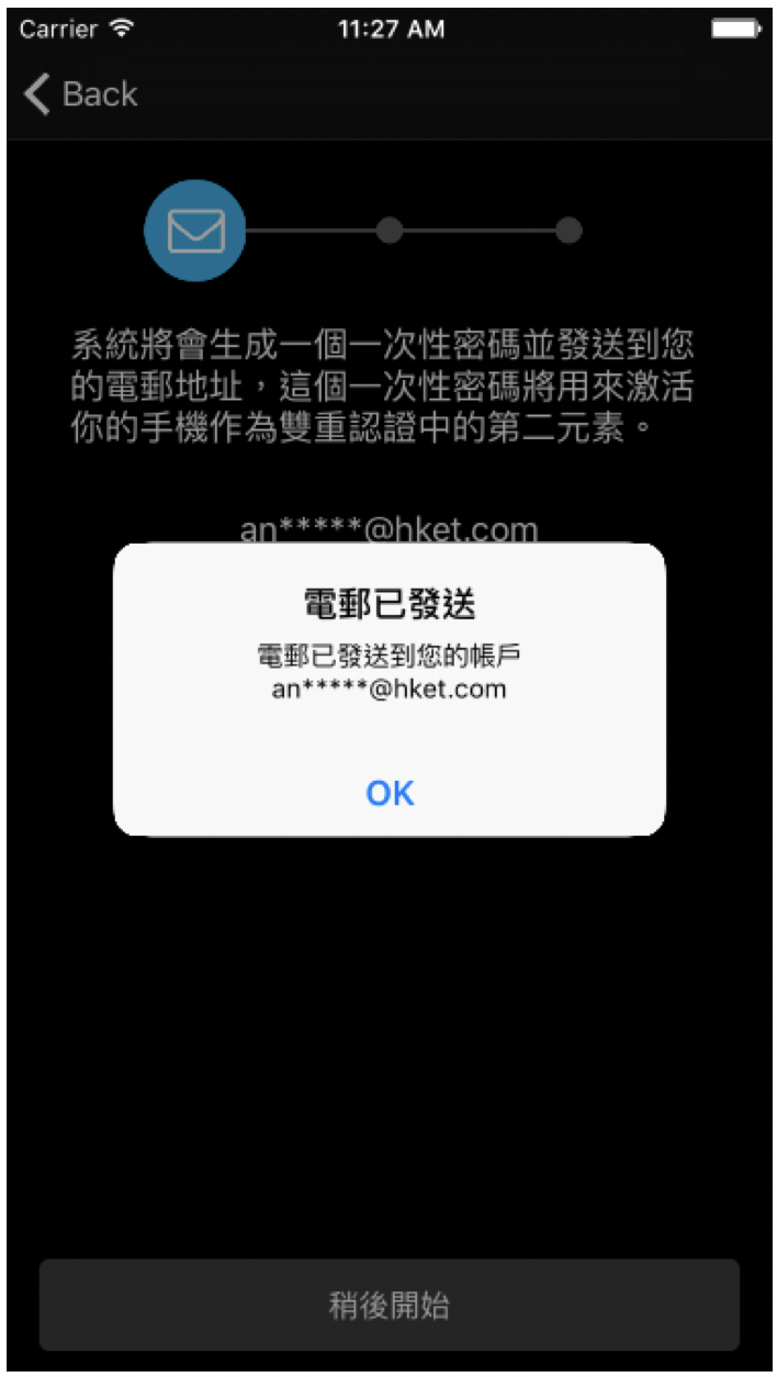 步骤5. 系统之后会出现「电邮已发送」的讯息,请查看邮件与此同时,按下OK进入下一页
