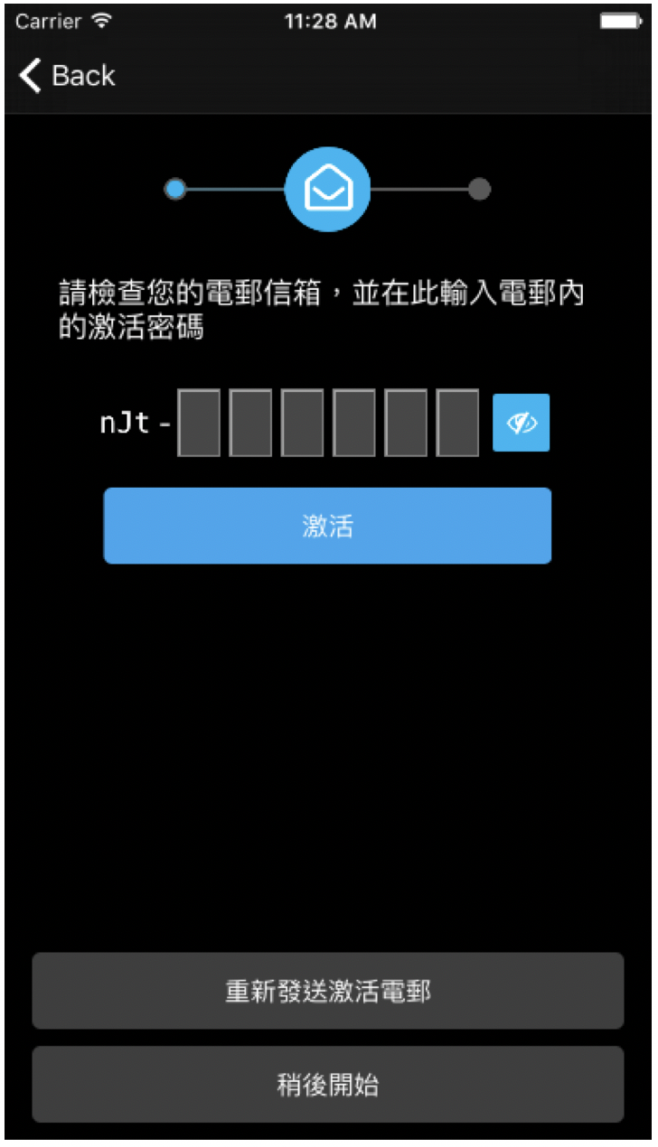 步骤6. 使用邮件中提供的激活密码输入,并按下「激活」,若果收不到邮件,可以按下「重新发送激活电邮」