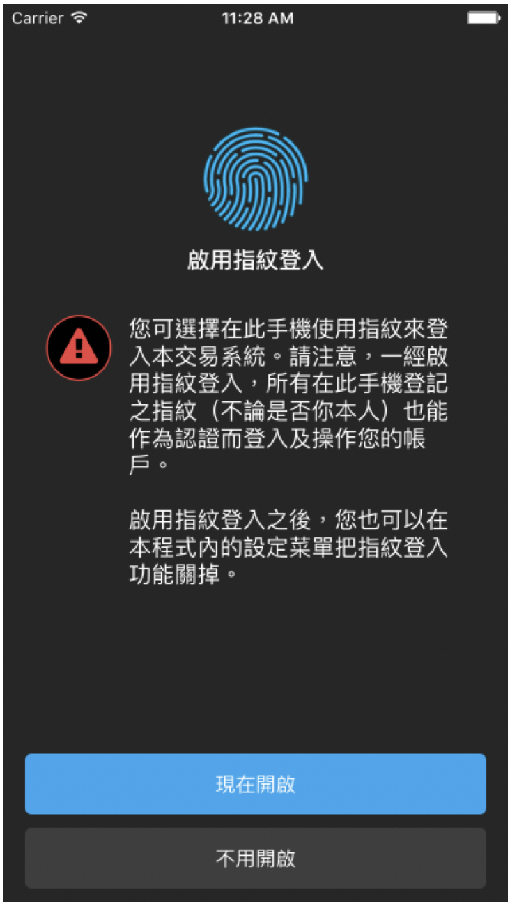 如果用户有需要,可以按下「启动指纹登入」来启用指纹登入